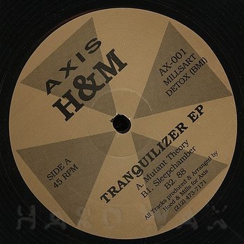 12"— out of stockAxis 001Label CatalogH & M: Tranquilizer EPLegendary first Axis release by Robert Hood & Jeff Mills A1 Mutant Theory A2 Sleepchamber B1 88