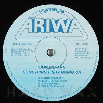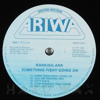 LP—LP € 27Ariwa LP 010Reggae / A09Ranking Ann: Something Fishy Going OnWicked 80s DJ set A1 Something Fishy Going On A2 Call Me Ranking Ann A3 Fifty Ways A4 Stop Romance Inna Dance A5 Hot! Hot! Hot! B1 Dangerous M.C. B2 Immigration Plan B3 A Wa Do Men B4 The Man Is Mine