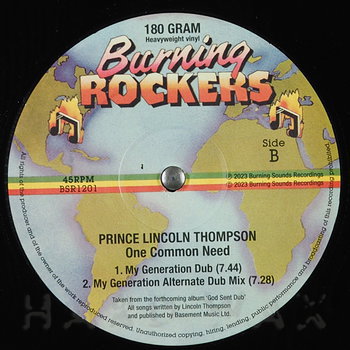12"— out of stockBurning Rockers 1201Reggae / C8Prince Lincoln Thompson: One Common NeedIrresistible early 80s roots stepper properly reissued w/ additional dub - Tip! A1 One Common Need A2 Food, Clothing And Shelter B1 My Generation Gub B2 My Generation Dub Alternate Dub Mix