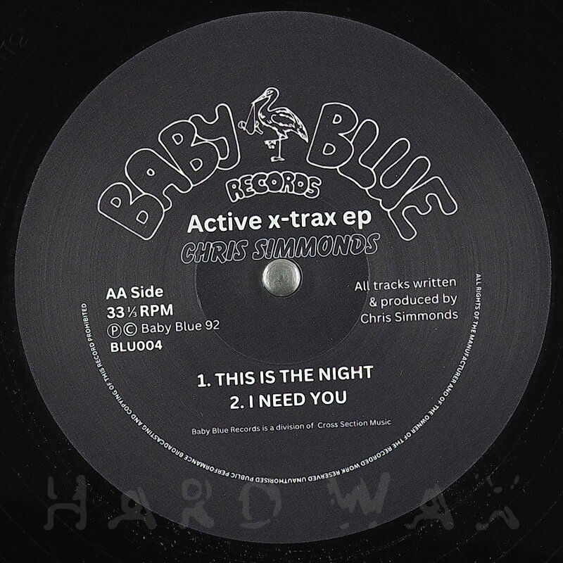 12"—12" € 18Baby Blue Records 004Label CatalogChris Simmonds: Active X-Trax EPReissue of forward Breakbeat / House gems A1 We've Got Power A2 Basic Bassis B1 This Is The Night B2 I Need You