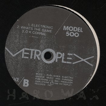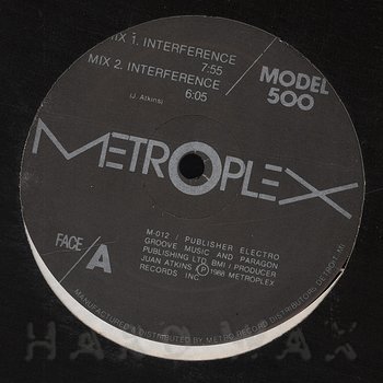12"— out of stockMetroplex 012Label CatalogModel 500: InterferenceJuan Atkins prod. 1988 Detroit Electro (One original sealed copy) A1 Mix 1 -Interference A2 Mix 2 -Interference B1 Electronic B2 What’s The Game B3 O K Corral