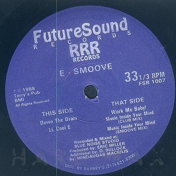 12"— out of stockFuture Sound 1007Label CatalogE-Smoove: Down The DrainEric Miller prod. Chicago house classic. one mint copy A1 Down The Drain A2 LL Cool E B1 Work Me Baby! B2 Music Inside Your Mind (Club Mix) B3 Music Inside Your Mind (Smoove Mix)