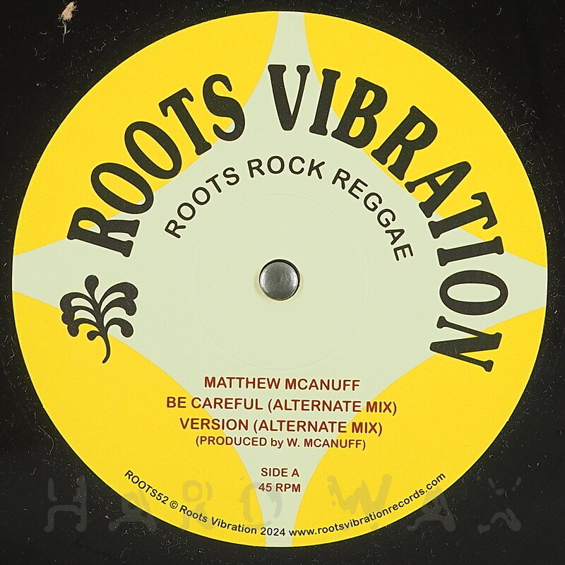 12"—12" € 18.5Roots Vibration 052Reggae / C1Matthew McAnuff: Be CarefulWicked alternate modern roots paired here w/ the original cut A1 Be Careful (Alternate Mix) A2 Version (Alternate Mix) B1 Be Careful (Original 2009 version)