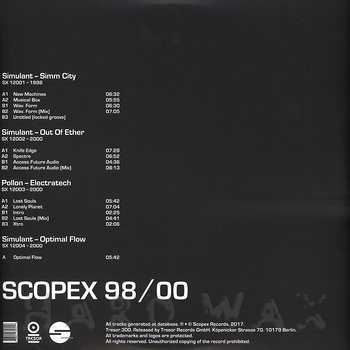 ‘All tracks are re-mastered from the original DAT tapes. The recently unearthed “Original Flow" was originally recorded in 2000 and previously unreleased. The 4 records come together in a beautiful gatefold sleeve featuring the original and idiosyncratic Scopex designs with delicate spot UV print. Essential...’