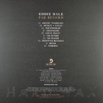 Do LPMP3AIFF out of stockDenude 003Label CatalogEddie Hale: Far BeyondFlawless, warm, spaced out Techno / Ambient album A1 Ancient Technology A2 Infinite Cycles A3 Subterranean B1 Anschauung B2 Exotic Object B3 Far Beyond C1 The Reason C2 Encrypted Messages D1 Mecha D2 TerminusDo LPMP3AIFFMP3AIFF10 AIFFs € 12.510 MP3s € 10Denude DND003Eddie Hale: Far BeyondFlawless, warm, spaced out Techno / Ambient album Ancient Technology2:31AIFF € 1.25MP3 € 1.00 Infinite Cycles7:19AIFF € 1.75MP3 € 1.25 Subterranean5:58AIFF € 1.75MP3 € 1.25 Anschauung5:04AIFF € 1.75MP3 € 1.25 Exotic Object5:03AIFF € 1.75MP3 € 1.25 Far Beyond4:45AIFF € 1.75MP3 € 1.25 The Reason5:10AIFF € 1.75MP3 € 1.25 Encrypted Messages5:32AIFF € 1.75MP3 € 1.25 Mecha5:10AIFF € 1.75MP3 € 1.25 Terminus6:13AIFF € 1.75MP3 € 1.25