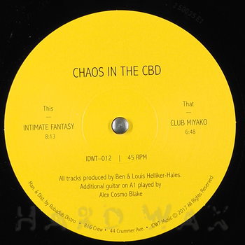 12"— out of stockIn Dust We Trust 012Label CatalogChaos In The CBD: Intimate Fantasy EPSub heavy House smoothness echoing 90s NYC house glory A1 Intimate Fantasy B1 Club Miyako