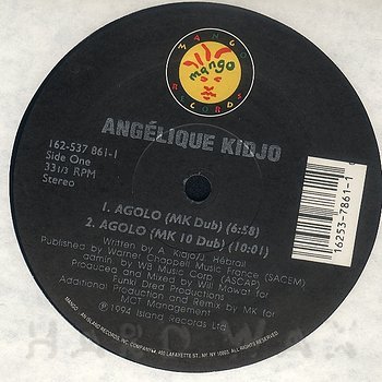 12"— out of stockMango 162-537-861Label CatalogAngélique Kidjo: AgoloWill Mowat of Funki Dred prod. various deep grooving M.K. house remixes A1 MK Dub A2 MK 10 Dub B1 MK Mix B2 MK Chatless Mix B3 MK Kombat Mix