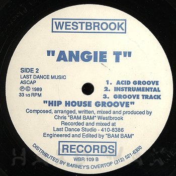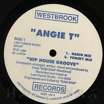 12"— out of stockWestbrook 109Label CatalogAngie T: Hip House GrooveRare Chicago hip House tracks from 1998. Bam Bam prod. A1 Hip House Groove (Radio Mix) A2 Hip House Groove (Funcky Mix) B1 Hip House Groove (Acid Groove) B2 Hip House Groove (Instrumental) B3 Hip House Groove (Groove Track)