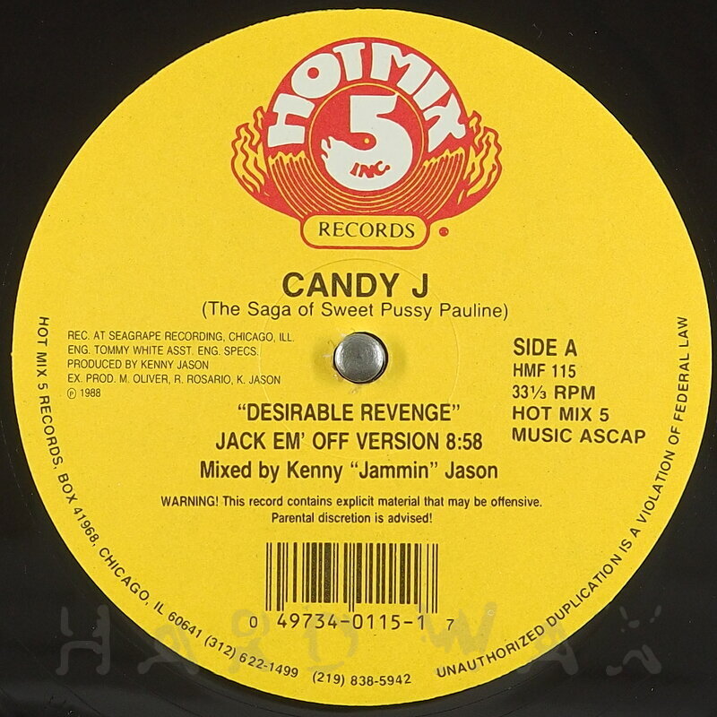 12"—12" € 20Hot Mix Five 115Label CatalogCandy J: Desirable RevengeWarehouse find, mint A1 Jack Em’ Off Version B1 Pump It Hard Dub B2 Candy’s Big Dick Mix