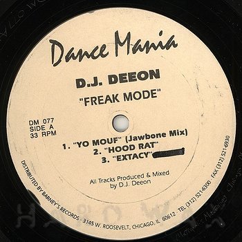12"— out of stockDance Mania 077Label CatalogDJ Deeon: Freak ModeHard Chicago X-rated house. sealed only one copy available A1 Yo Mouf (jawbone Mix) A2 Hood Rat A3 Extacy B1 Suck It Deep B2 Phaze II B3 Originator