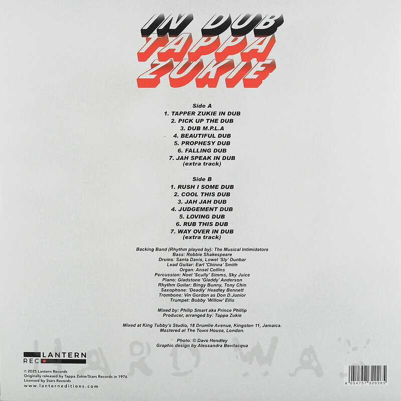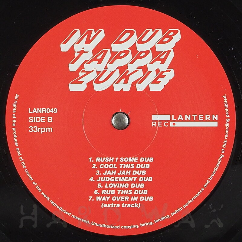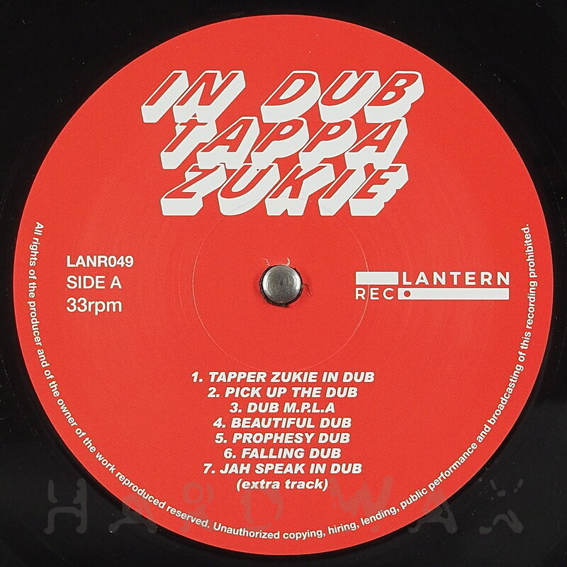 LP—LP € 27Lantern 008Reggae / A21Tappa Zukie: In DubReissue of essential 70s dub set, comes w/ extra tracks A1 Tapper Zukie In Dub A2 Pick Up The Dub A3 Dub M.P.L.A A4 Beautiful Dub A5 Prophesy Dub A6 Falling Dub A7 Jah Speak In Dub B1 Rush I Some Dub B2 Cool This Dub B3 Jah Jah Dub B4 Judgement Dub B5 Loving Dub B6 Rub This Dub B7 Way Over In Dub