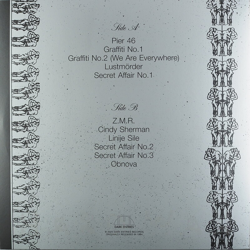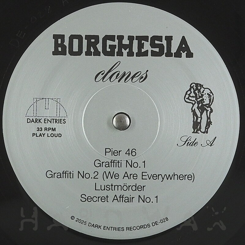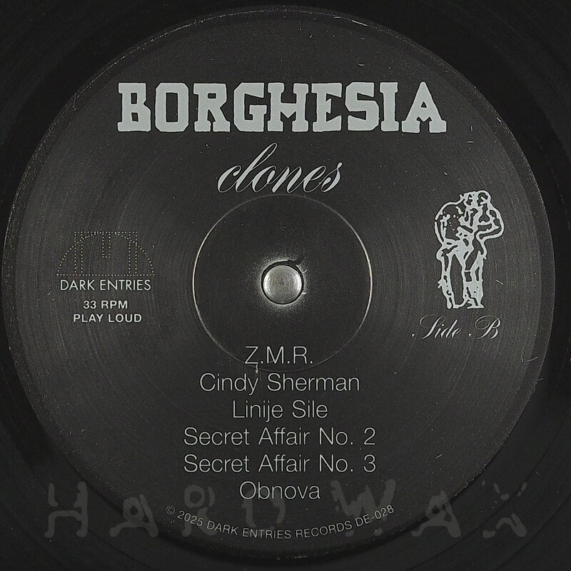 LP—LP € 27Dark Entries 028WaveBorghesia: ClonesFirst ever vinyl edition of second album, self-released on cassette only in 1984 A1 Pier 46 A2 Graffiti No. 1 A3 Graffiti No. 2 (We Are Everywhere) A4 Lustmorder A5 Secret Affair No. 1 B1 Z.M.R. B2 Cindy Sherman B3 Lini Je Sile B4 Secret Affair No. 2 B5 Secret Affair No. 3 B6 Obnova