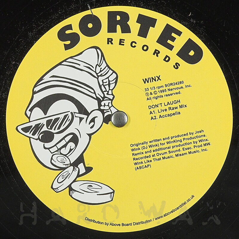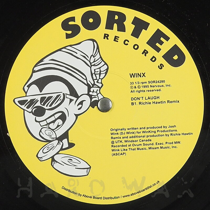 12"—12" € 14Nervous Sorted 24280Label CatalogWinx: Don’t LaughReissue of heavyweight classic. sinister Richie Hawtin remix A1 Don’t Laugh (Live Raw Mix) A2 Don’t Laugh (Accapella) B1 Don’t Laugh (Richie Hawtin Remix)