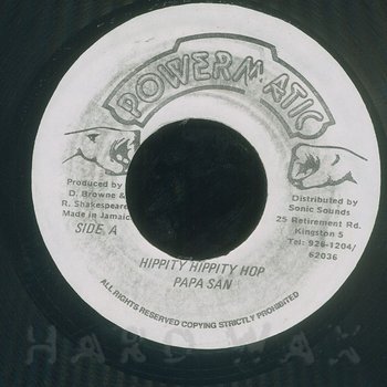 7"— out of stockPowermaticReggae / C9Papa San: Hippity Hippity HopOne vg+ copy A1 Hippity Hippity Hop B1 Version