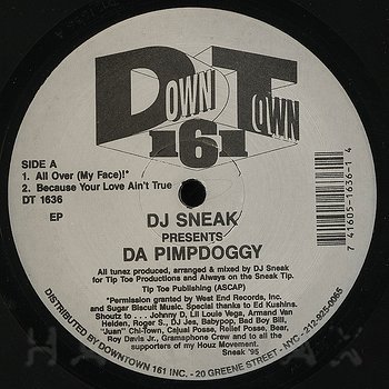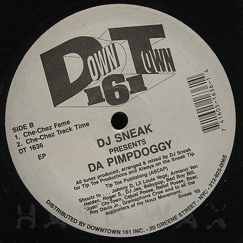 12"— out of stockDowntown 161 1636Label CatalogDJ Sneak: Da Pimpdoggy EPDisco tinged house tracks A1 All Over (My Face)! A2 Because Your Love Ain’t True B1 Che-Chez Fame B2 Che-Chez Track Time