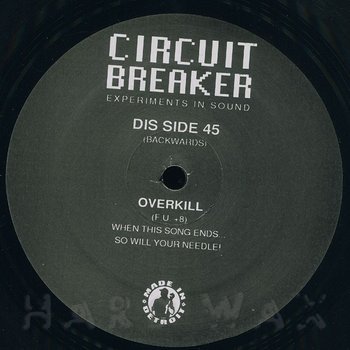 12"— out of stockProbe 002Label CatalogCircuit Breaker: Overkill1991 Richie Hawtin prod. original Acid Techno bangers. One Mint copy. A1 Overkill (F.U. +8) B1 Frenz-E B2 Open Your Mind