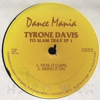 12"— out of stockDance Mania 146Label CatalogTyrone Davis: To Slam Trax EP 1Percolating X-rated hard Chicago tracks. one sealed copy available A1 Here It Cums A2 Bring It On B1 Get Smokey B2 Animator