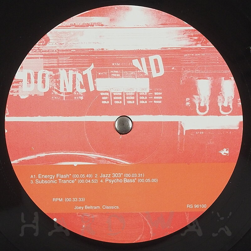 Do 12"—Do 12" € 29R&S 96100Label CatalogJoey Beltram: ClassicsSuper classics. Volume 1 & 2, Mentasm, Energy Flash - pure Techno history! A1 Energy Flash A2 Jazz 303 A3 Subsonic Trance A4 Psychobase B1 My Sound B2 The Melody B3 Sub Bass Experience B4 The Reflex C1 Mind To Mind C2 Mentasm D1 Joey’s Roit D2 The Trance D3 Groove Attack
