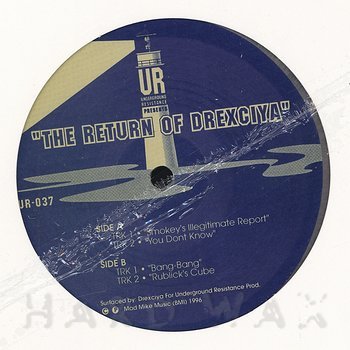 12"— out of stockUR 037Label CatalogDrexciya: Return Of Drexciya EP(one sealed copy only, grey marbled vinyl repress) A1 Smokey’s Illegitimate Report A2 You Don’t Know B1 Bang-Bang B2 Rubick’s Cube