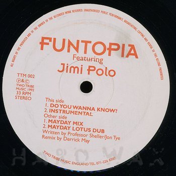 12"— out of stockTwo Tribe Music 002Label CatalogFuntopia feat. Jimi Polo: Do You Wanna Know?Excellent Derrick May remixes. very good condition. only one copy available A1 Do You Wanna Know? A2 Instrumental B1 Mayday Mix B2 Mayday Lotus Dub