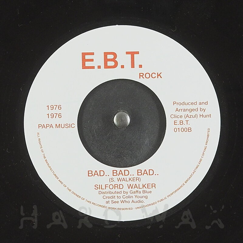 7"— out of stockE.B.T. Rock 1011Reggae / C7Sylford Walker: I Can't UnderstandTotal killer 70s Roots heat produced by Azul, heavy dub A1 I Can't Understand B1 Bad, Bad, Bad