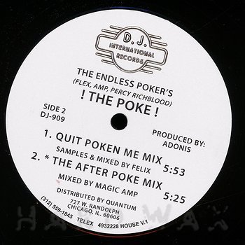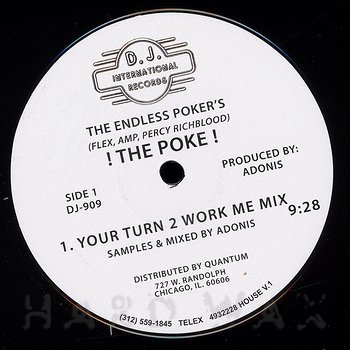 12"— out of stockDJ International 909Label CatalogEndless Pokers: The Endless Poker’s Poke!Repress via UK; Adonis prod. Acid House A1 ! The Poke ! (Your Turn 2 Work Me Mix) B1 ! The Poke ! (Quit Poken Me Mix) B2 ! The Poke ! (The After Poke Mix)