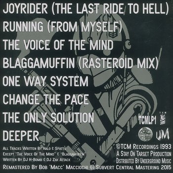Do EP— out of stockThe Criminal Minds 1Label CatalogThe Criminal Minds: Mind Bombing1993 UK Hardcore / early Jungle / Drum & Bass gem properly reissued (w/ CD version thrown in) A1 Joyrider 2 (THE Last Ride To Hell) A2 Running (From Myself) B1 The Voice Of The Mind B2 Blaggamuffin (Rasteroid Mix) C1 One Way System C2 Change The Pace D1 The Only Solution D2 Deeper