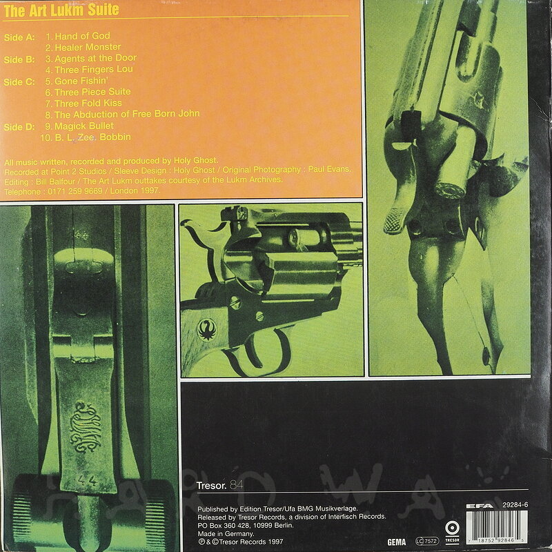 Do LP—Do LP € 40Tresor 084Label CatalogHoly Ghost: The Art Lukm SuiteWarehouse find, vg+ A1 Hand Of God A2 Healer Monster B1 Agents At The Door B2 Three Fingers Lou C1 Gone Fishin' C2 Three Piece Suite C3 Three Fold Kiss C4 The Abduction Of Free Born John D1 Magick Bullet D2 B. L. Zee Bobbin