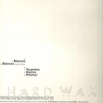 12"— out of stockUSM OTL 004Label CatalogHair: Blances EPDeep house grooves A1 Blances A2 Blances (Isolée Remix) B1 Toupetes B2 Noires B3 Polykur