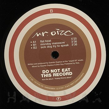 12"— out of stockF Communications 104Label CatalogMr. Oizo: Flat BeatClassic bassline driven monster tracks A1 Flat Beat B1 Monday Massacre B2 Sick Dog Try To Speak