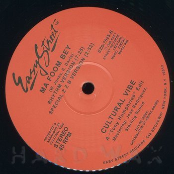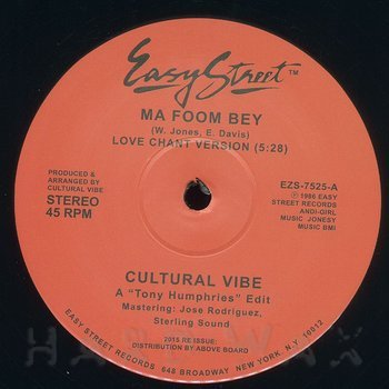 12"— out of stockEasy Street 7525DiscoCultural Vibe: Ma Foom BeyRe-issue via UK; stripped down 1986 NY House blueprint A1 Ma Foom Bey (Love Chant Version) B1 Ma Foom Bey (Rhythm Version) B2 Ma Foom Bey (Special ZZB Version)