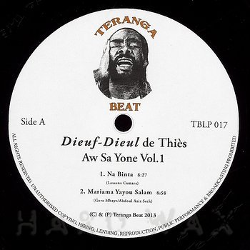 ’Teranga Beat proudly presents Dieuf-Dieul de Thiès in their first ever edition. Three singers Assane Camara, Bassirou Sarr and Gora Mbaye together with their chef d’orchestre and guitar player Pape Seck (an ex-member of Guelewar) compose traditional rhythms from all the regions of Senegal, with fuzz guitars, horn sections and hallucinatory percussion. The result is an explosive mixture of an Electric Psychedelic sound with the wisdom and superiority of the musical traditions of the region, a crossover of Afro-Manding and Afro-Jazz, in which each singer guides the 13-member band in a different direction. Even today this 32 year old recording sounds futuristic and it is really rather weird that Dieuf-Dieul never had the chance to release an actual album. Aw Sa Yone Vol.1 includes the biggest part of their second recording and the double LP comes in a special edition with a Silkscreen print cover with a large poster & included in the CD booklet photos and liner notes outlining the group member’s careers. There was no other group in Senegal with such a variety of cultural background and a strong identity. Senegalese music at its BEST! We hope you will enjoy.’