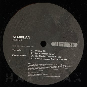12"— out of stockCinematic 12014Label CatalogKlaina: SemiplanExcellent, tripping leftfield House EP A1 Semiplan (Original Mix) A2 Semiplan (Juju & Jordash Remix) B1 Semiplan (The Rhythm Odyssey Remix) B2 Semiplan (Amir Alexander Catacomb Remix)