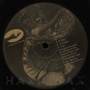 12"— out of stockPurpose Maker 009Label CatalogJeff Mills: If (feat. Anna F)Deep driving Detroit echno w/s female vocals A1 If (We) A2 If (They) A3 If (I) B1 Tango (Performance Mix)
