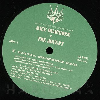 12"— out of stockMajesty 107Label CatalogMike Dearborn vs. Advent: BattleHard driving techno tracks A1 Battle (Advent Rmx) B1 Battle (Dearborn Rmx)