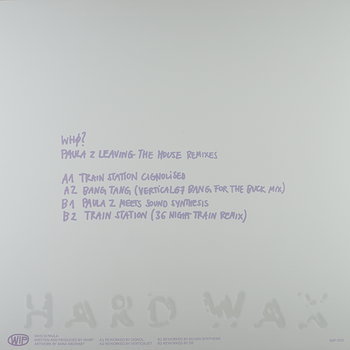 12"— out of stockWho Is Paula 002Label CatalogWhø?: Paula Z Leaving The House RemixesCarefully tripped out, dreamy Electro remix EP A1 Train Station (Cignolised) A2 Bang Tang (Vertical67 Bang For The Buck Mix) B1 Paula Z Meets Sound Synthesis B2 Train Station (36 Night Train Remix)
