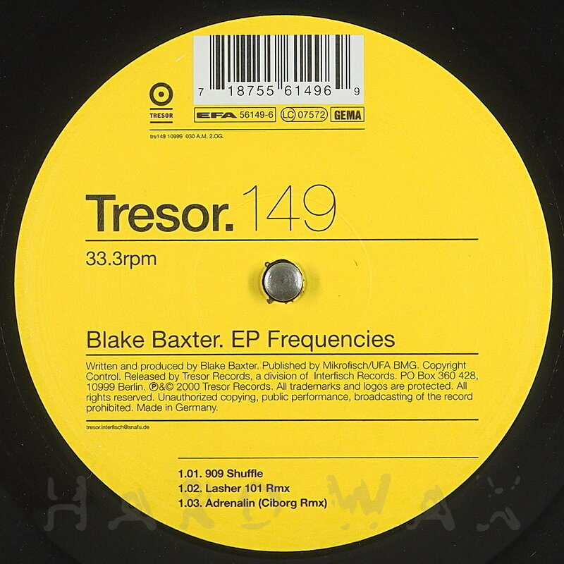 12"MP3AIFF out of stockTresor 149Label CatalogBlake Baxter: Frequencies EPRaw jacking Detroit Techno workouts A1 909 Shuffle A2 Lasher 101 Rmx A3 Adrenalin (Ciborg Rmx) B1 Frequency Old Skool B2 Laugh And Dog12"MP3AIFFMP3AIFF5 AIFFs € 8.755 MP3s € 6.25Tresor Records Tresor149Blake Baxter: Frequencies EPRaw jacking Detroit Techno workouts 909 Shuffle (Mixed)3:06AIFF € 1.75MP3 € 1.25 Lasher 101 (Remix [Mixed])4:22AIFF € 1.75MP3 € 1.25 Adrenalin (Ciborg Remix [Mixed])6:13AIFF € 1.75MP3 € 1.25 Frequency Old Skool6:08AIFF € 1.75MP3 € 1.25 Laugh And Dog4:27AIFF € 1.75MP3 € 1.25