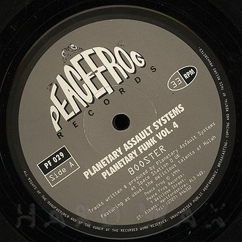 12"— out of stockPeacefrog 029Label CatalogPlanetary Assault Systems: Planetary Funk Vol. 4Luke Slater prod. Techno tracks A1 Booster B1 Diesel Drudge