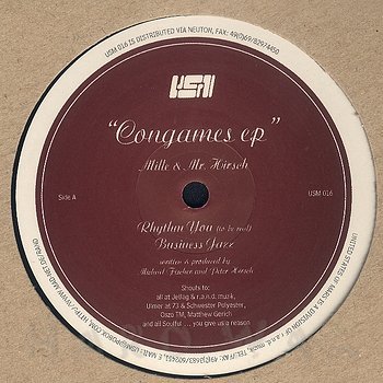 12"— out of stockUSM 016Label CatalogMille & Mr. Hirsch: Congames EPWarm epic Moodymann / Theo Parrish influenced house - check! A1 Rhythm You (To Be Real) A2 Business Jazz B1 Surge (Part 1) B2 Surge (Part 2)