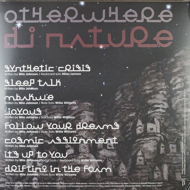 Do 12"— out of stockJazzy Sport 219/220Label CatalogDJ Nature: OtherwhereBlinding, warm, DJ tool House set - highly recommended (one per customer) 01 Synthetic Crisis 02 Mbakwe 03 Joyous 04 Follow-Your-Dreams 05 Cosmic-Assignment 06 Its Up To You 07 Drifting In The Foam 08 Sleep Talk