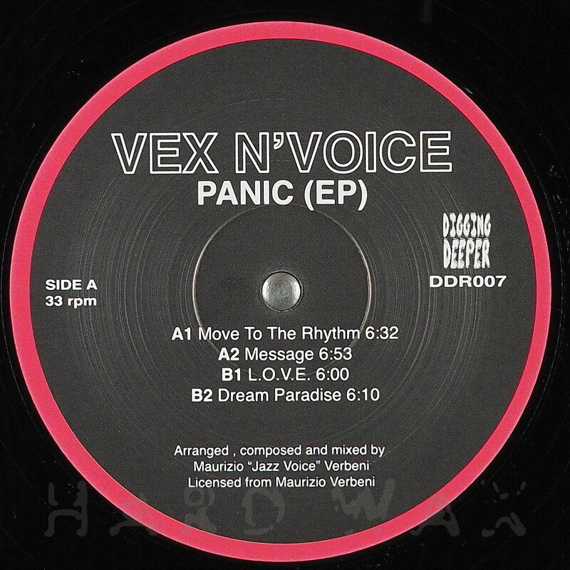 12"— out of stockDigging Deeper 007Label CatalogVex N'Voice: PanicReissue of Maurizio Verbeni prod. deep Italian original House goodness from 1995 A1 Move To The Rhythm A2 Message B1 L O V E B2 Dream Paradise