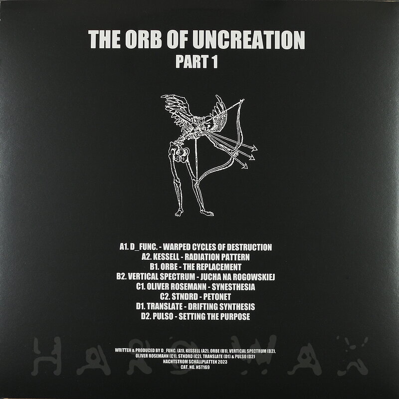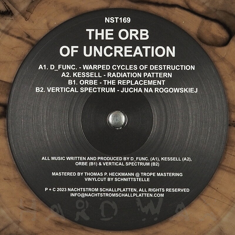 Do LP— out of stockNachtstrom Schallplatten 169Label CatalogVarious Artists: The Orb Of UncreationSuperb, deep, boomy Techno compilation A1 D_Func: Warped Cycles Of Destruction A2 Kessell: Radiation Pattern B1 Orbe: The Replacement B2 Vertical Spectrum: Jucha Na Rogowskiej C1 Oliver Rosemann: Synesthesia C2 Stndrd: Petonet D1 Translate: Drifting Synthesis D2 Pulso: Setting The Purpose