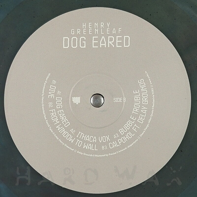 EP—EP € 15Yuku 036Label CatalogHenry Greenleaf: Dog EaredSuperb, deep, bottom-heavy UK Garage / Breakbeat infused tech steppers A1 Dog Eared A2 Ithaca Vox A3 Bubble Trouble B1 Dive B2 From Window To Wall B3 Calpohol Feat. Delay Grounds