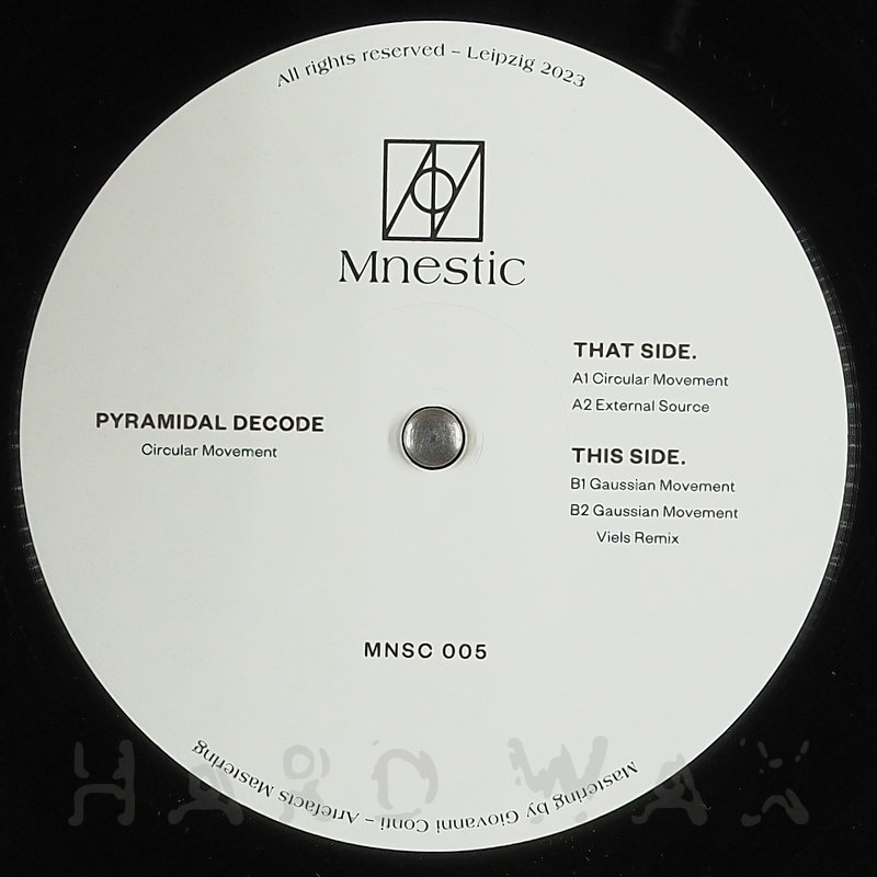 12"— out of stockMnestic 005Label CatalogPyramidal Decode: Circular MovementDeep, boomy DJ tool Techno hypnotics A1 Circular Movement A2 External Source B1 Gaussian Movement B2 Gaussian Movement (Viels Remix)