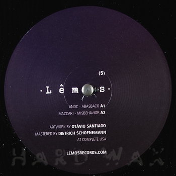 12"— out of stockLemos 005Label CatalogVarious Artists: AbasbacoTrippy driving Techno mini-compilation A1 Andc: Abasbaco A2 Maccari: Misbehavior B1 Aske: Workers B2 Nicolas Vogler: Syncopations