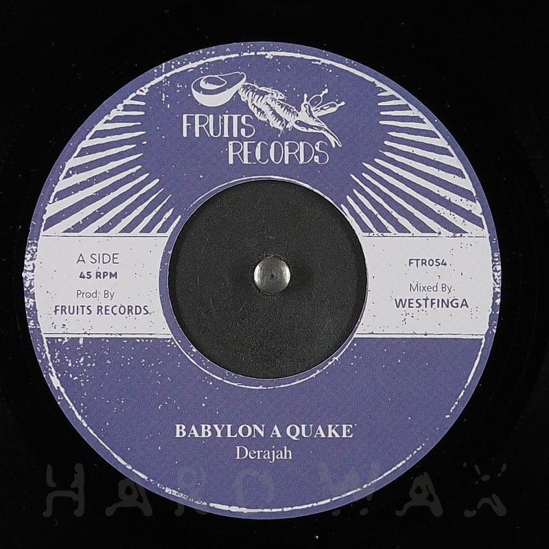 7"— out of stockFruits 054Reggae / C1Derajah: Babylon A QuakeDeep current Roots production, check the dub A1 Babylon A Quake B1 The 18th Parallel: Dub Quake