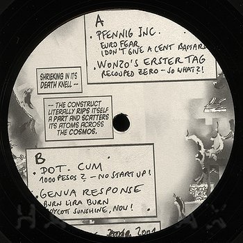 12"— out of stockNonplace 006Label CatalogBeige: Non-ProfitCut-up house & laptop funk w/ cartoon score sfx A1 Pfennig Inc. (Euro Fear - Don’t Give A Cent Bastard!) A2 Wonzo’s Erster Tag (Recouped Zero - So What?!) B1 Dot.Cum (1000 Pesos? - No Start Up!) B2 Genua Response (Burn Lira Burn - Boycott Sunshine, Now!)