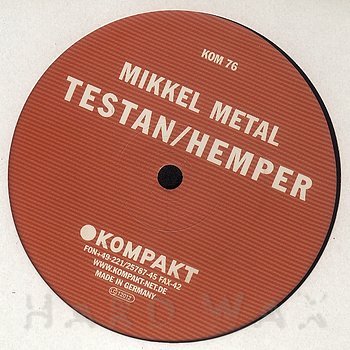 12"— out of stockKompakt 076Label CatalogMikkel Metal: TestanDeep harmonic ambient techno w/ subtle pulsating grooves A1 Testan B1 Hemper