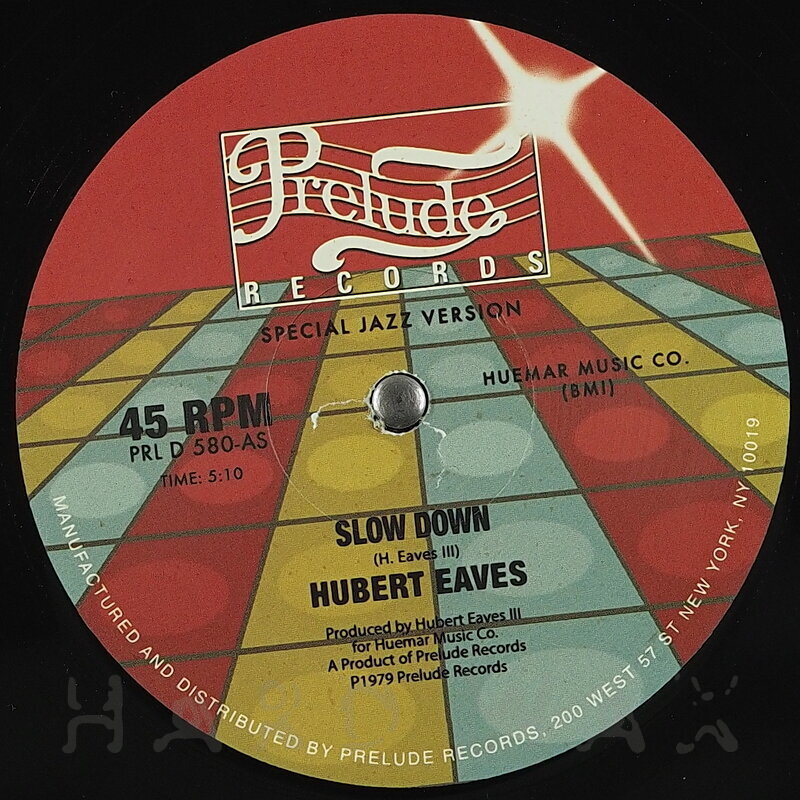 12"—12" € 18Prelude D 580DiscoHubert Eaves: Slow DownJazz/disco classics. brilliant Francois Kevorkian mix A1 Slow Down B1 D-Train: You’re The One For Me (Reprise)