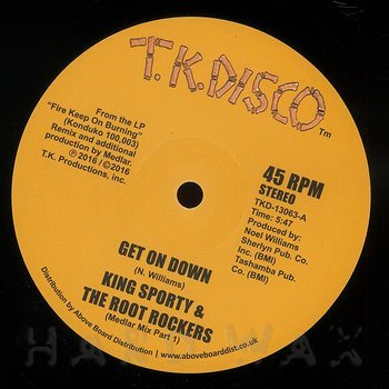 12"— out of stockT.K. Disco 13063DiscoKing Sporty & The Root Rockers: A Get On DownReissue via UK; classic 1982 Disco A1 A Get On Down (Medlar Mix Part I) B1 A Get On Down (Medlar Mix Part II)